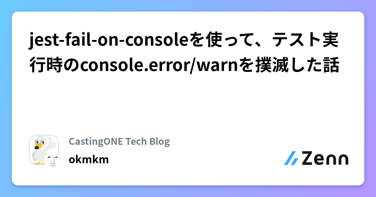 jest-fail-on-consoleを使って、テスト実行時のconsole.error/warnを撲滅した話